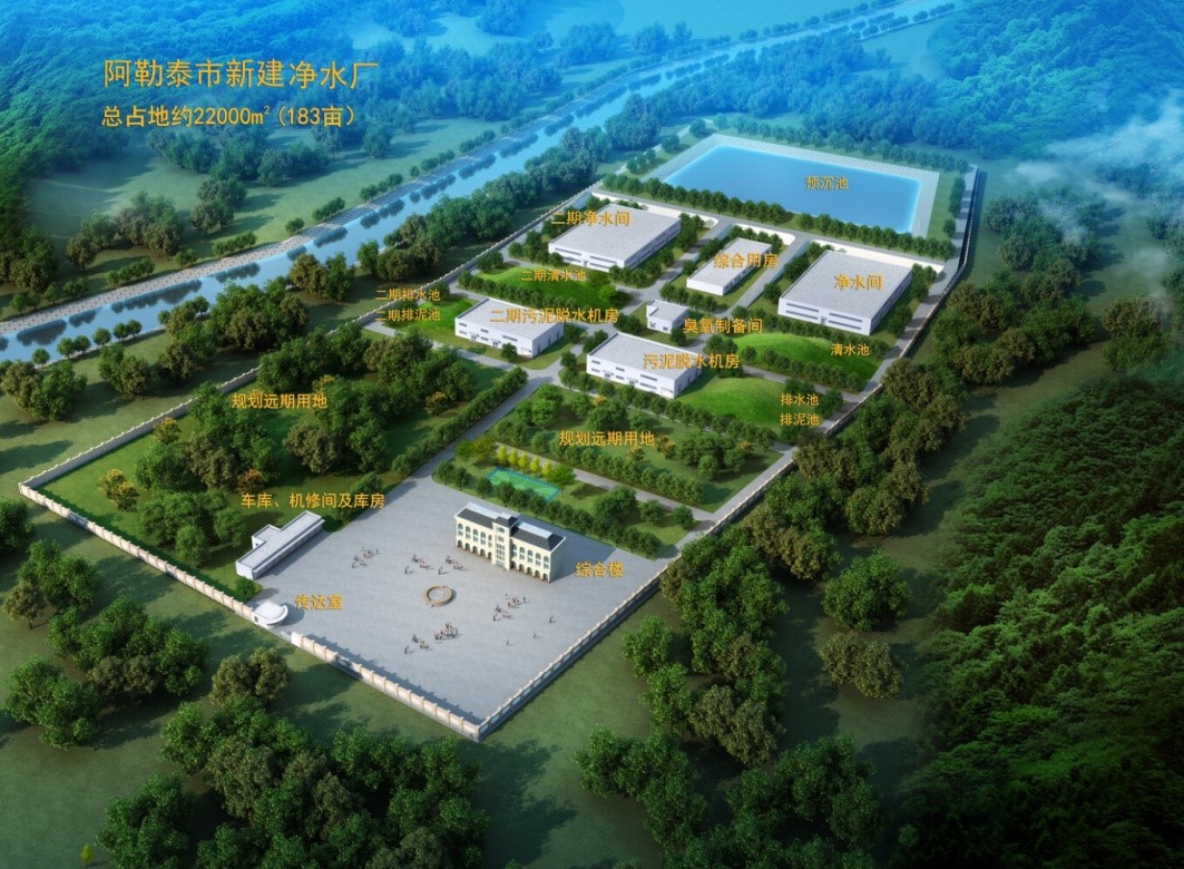 项目概况:新建1座库容12.3万m3的贮水调节池,改造阿勒泰市第三自来水厂,使其满足供水能力3.0万m3/d,新建近期供水能力2.5万m3/d,远期达到5.0万m3/d的自来水厂一座,新建配套管网21.75km,工程占地面积为244.78亩,总投资17691.28万元。